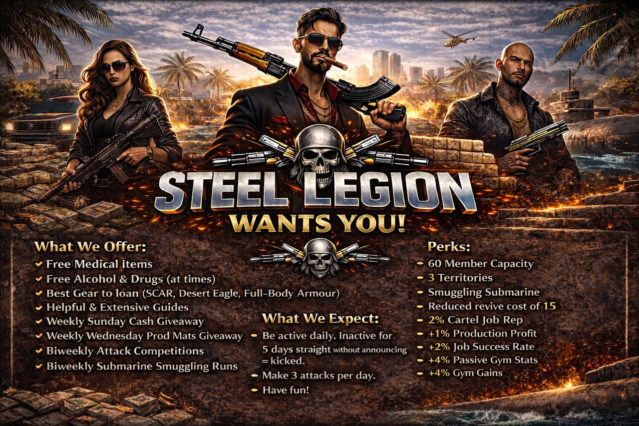 Steel Legion is a brand new cartel for players who want to grow, help each other, and have fun in CE.