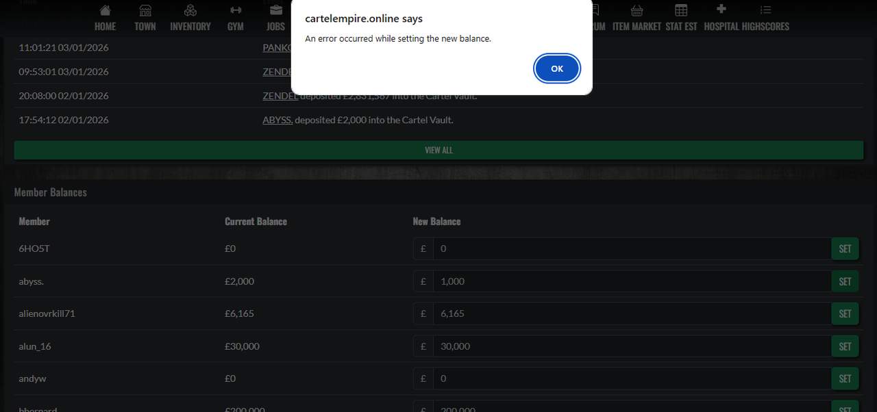Tried with several people, and whenever I try to lower their balance it gives the error.